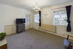 Double glazed windows to front, decorative coving, radiator, under stair store cupboard, gas fire place (with back boiler), part glazed door opening to;